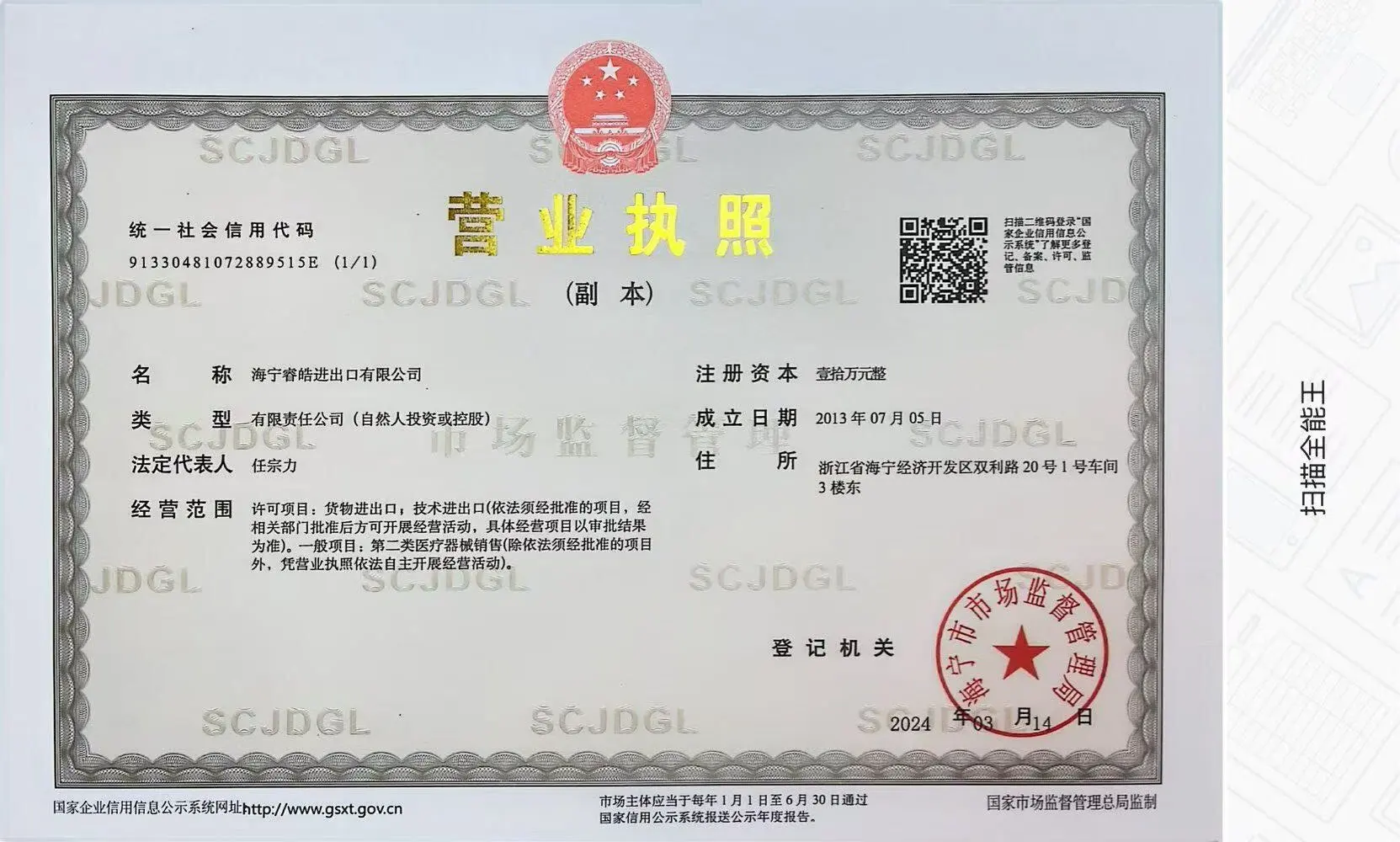 Company Name : Haining Ruihao Import & Export Co., Ltd.